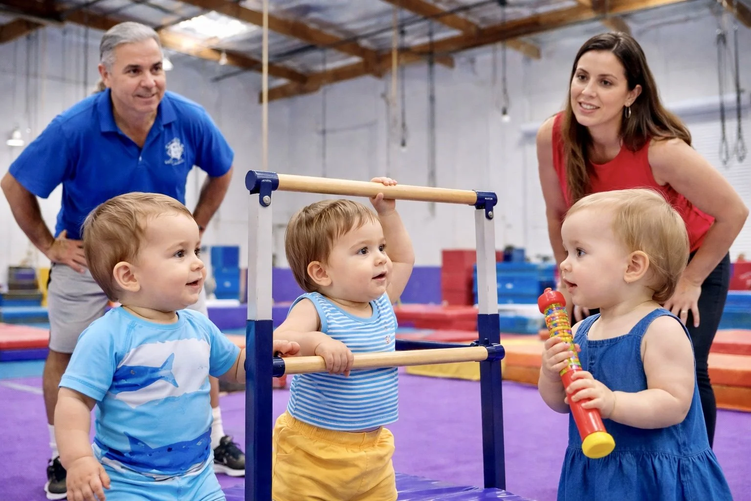 Children can start as early as 9 months in parent-child classes at Gyminny Kids in San Diego.